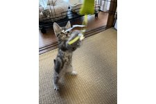 - 円2025/09/17生まれ シルバー系おてんば元気娘❤オモチャの反応も良き良き🐱♪(毛色:シルバーパッチドタビー)