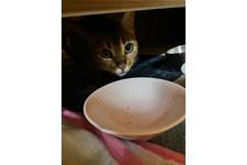 正猫の為まだお家に慣れていない為、ベッドの下に隠れていますが少しずつ顔をだしてくれるようになりました。